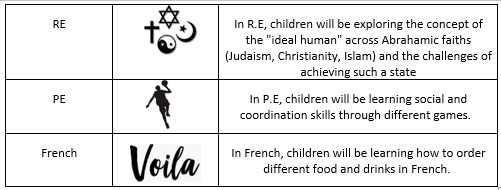 In Music, they will be learning all about dynamics, pitch and texture using a range of different songs. |